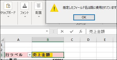 例えば、上の事例で言えば、”合計/売上金額”という文字の”合計”部分を変えようとすると、こんなメッセージが出てエラーになってしまいます