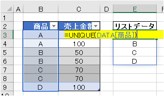 ところが、UNIQUE関数を組み合わせると、データクリーニングの必要はなくなります