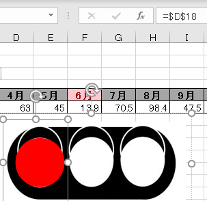 信号といってもテキストボックスに●を入れてフォントの色を変えているだけです