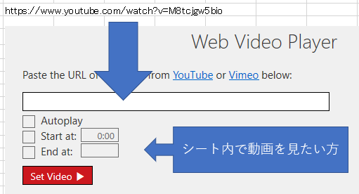 このアドインはエクセルシート上で動画を開くことができます