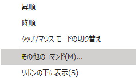 次に、下の画像の画面が開くので、下のほうにある「その他のコマンド」をクリックします