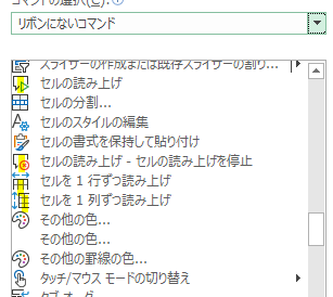 次に開いた画面で「リボンにないコマンド」を選択します
