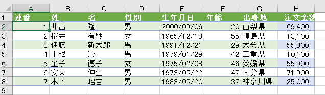 見出しではなく、データ部分にカーソルを置きます