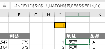 下の画像のようにINDEX関数の中にMATCH関数を使用しているケースなどは典型です