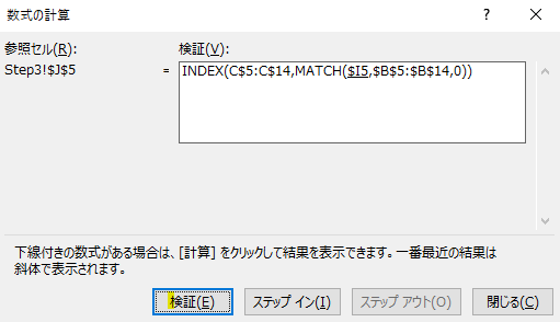 そして、もう一度「検証」を押すと完全に数式の中味が表示されます