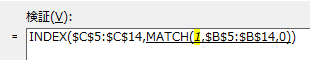 今度は、完全にMATCH関数の中味が表示されます