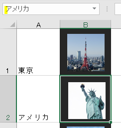 上の画像のように、東京タワーや自由の女神などの画像が入ったセルに名前をつけておきます