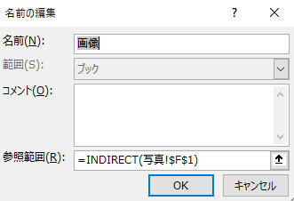今回は、画像という名前の中にINDIRECT関数を設定します