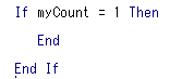 こちらのコードは「もし/If、1からはじまるmyCountが1の場合には、マクロを終了する」という意味になります
