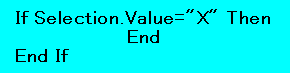 つまり、「もし/If、カーソルが選択されているセルの中味が”X”の場合には」という条件式が「If ~ Then」の ~ の箇所に書いてあります