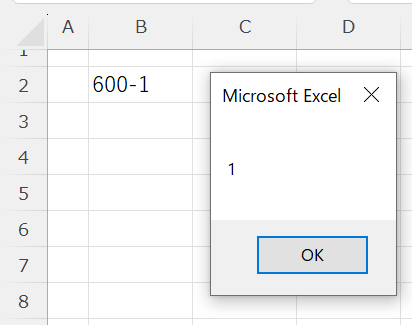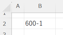 例えば、シートのB1セルに「600-1」の文字列があるとします