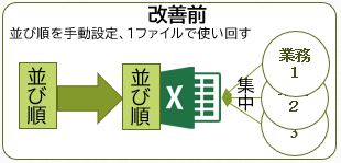 ・1ファイルをメンバー全員で共有して使用するため、業務メンバーに待ち時間が発生